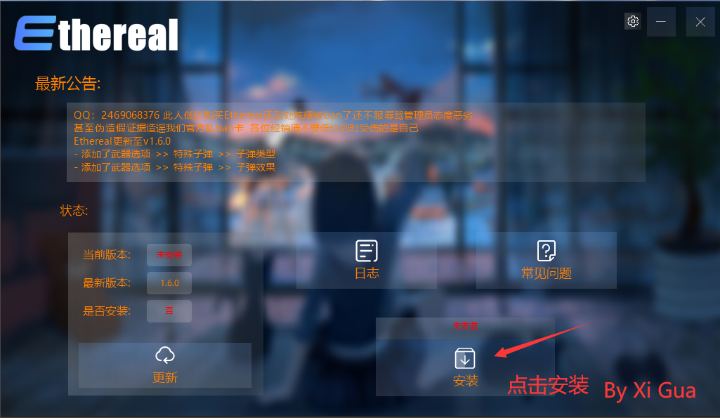第一步:管理员运行注入器 点击安装